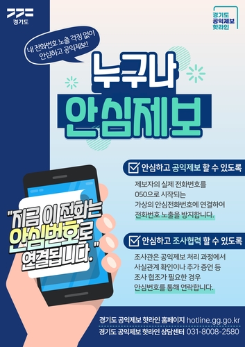 경기도가 전국 최초로 올 6월부터 공익제보 안심전화번호 서비스인 '누구나안심제보' 서비스를 시작한다고 27일 밝혔다.