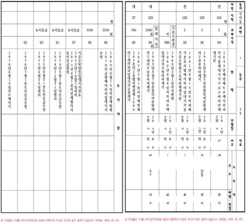 토지·임야대장은 지번, 지목, 면적 등 토지의 표시를 확인할 수 있는 대표적인 기록대장으로 영구 보존문서이자, 토지행정의 기초가 되는 중요한 자료이다.