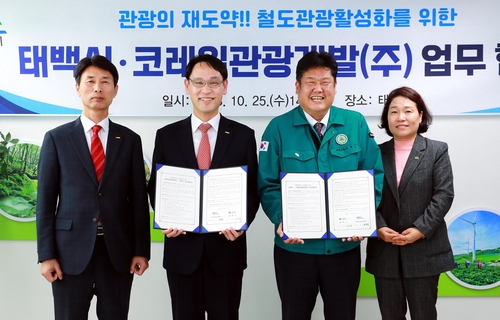 태백시(시장 이상호)는 지난 25일 코레일관광개발(대표이사 권신일)과 '지역관광·철도 여행문화 활성화'를 위해 업무협약을 체결했다고 밝혔다