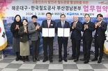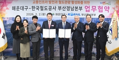 【국제일보】 해운대구(구청장 김성수)는 2일 한국철도공사 부산경남본부(본부장 손명철)와 상생협력 업무협약을 체결했다고 밝혔다. 이번 협약은 지난해 12월 30일 KTX-이음의 신해운대역, 센텀역 정차에 따른 후속 조치로, 늘어난 철도 수요에 대응하고 해운대를 철도관광 거점으로 육성하기 위해 마련됐다. 양 기관은 협약을 계기로 ▲해운대 관광자원을 활용한 철도 여행상품 개발·운영 ▲신해운대역·센텀역 중심의 교통 인프라 발전 방안 모색 ▲해운대구 철도 이용 활성화 네트워크 구축 ▲철도기반시설 조성 및 교통편의 증진 등에 적극 협력하기로 했다. 김성수 구청장은 "KTX-이음 정차로 해운대의 접근성이 획기적으로 개선된 만큼, 코레일과 협력해 철도관광 활성화에 최선을 다하겠다"라고 밝혔다.