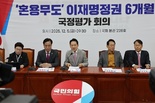 (서울=연합뉴스) 국민의힘 장동혁 대표는 5일 "이재명 정권 6개월을 한마디로 요약하면 '약탈과 파괴'"라고 말했다. 장 대표는 이날 국회에서 열린 '혼용무도 이재명 정권 6개월 국정평가 회의'에서 "이재명 정권은 대한민국의 자유민주적 법치를 파괴하고 나라의 안보까지 무너뜨리고 있다"며 이같이 주장했다. 그는 "이재명 정권은 민생 약탈을 넘어서 나라의 근간인 법치와 자유민주주의를 파괴하고 있다"며 "오직 한 사람, 이재명을 구하고 독재의 길을 열기 위해 헌정 질서와 사법 체계를 파괴하는 일을 서슴지 않고 있다"고 비판했다. 이어 "이재명 정권은 우리 안보마저 무너뜨리고 대한민국을 간첩 천국으로 만들려 한다"며 "대북 전단 살포를 금지하더니 대통령은 대북 전단 살포를 북한에 사과하겠다고 한다"고 언급했다. 그러면서 "납북된 우리 국민이 있다는 사실조차 대통령은 몰랐다"며 "중국인 간첩들이 개인정보를 탈취하는데도 간첩죄 개정을 가로막아 왔고 급기야 국가보안법 폐지까지 들고나왔다"고 했다. 장 대표는 "이재명 독재 정권에는 민생, 법치, 안보가 없다. 당연히 이들의 관심사에는 대한민국 미래도 없다"며 "오직 하나, 국민 탄압과 이재명 구하기만 있다"고 주장했다.