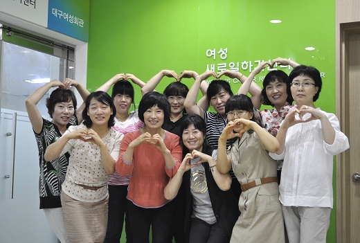 대구 여성회관 새일센터 직원들이 하트를 그리고 있다. 3924명 취업 성공…지역 ‘취업사관학교 역할’ 평가