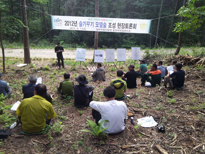 남부지방산림청장(청장 김판석)은 경북 울진군 서면 광회리에서 생태·환경적 가치를 높이기 위한 효율적 숲가꾸기 사업을 위해 전문가, NGO, 지역주민, 관계공무원 등 50여명이 참여하여 현장토론회를 개최하였다.