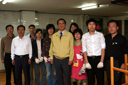 권태균 조달청장(사진 왼쪽에서 네번째)과 직원들은 추석명절을 맞아 9월 21일(월) 대전광역시 동구 하소동에 소재한 사회복지시설인 ‘성심보육원’을 방문, 봉사활동을 벌였다. 이날 행사는 권 청장과 직원들이 사회복지시설을 방문해 봉사활동을 통한 이웃사랑을 실천하기 위한 것으로 식당 청소, 텃밭 잡초제거, 아동돌보기 등 활동을 현장에서 벌이고 성금도 전달했다.