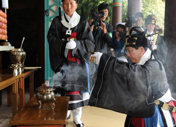 종헌관은 시민을 대표하는 제관으로서 주빈의 헌화·분향에 앞서 충무공 이순신 장군의 영정 앞에 나아가 술을 따르고 절을 올리는 의식 ‘헌작(獻爵)’을 올리게 된다.
