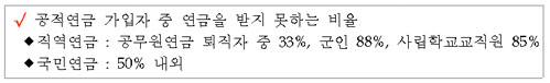 이로 인해 이직하는 경우(국민연금↔직역연금) 연금을 받기 위한 최소가입기간을 충족하지 못해 연금을 받지 못하는 사례가 많이 발생했다.