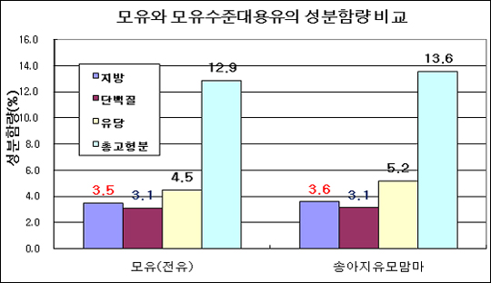 3년간의 실증시험을 통해 개발에 성공한 모유 대용유 ‘송아지유모맘마’를 전문육성목장(경기 화성)에서 비교실험한 결과, 시판 대용유 급여구 보다 2주 정도 빨리 출하체중에 도달하였으며, 설사발생도 2.5배 감소한 것으로 나타났다.