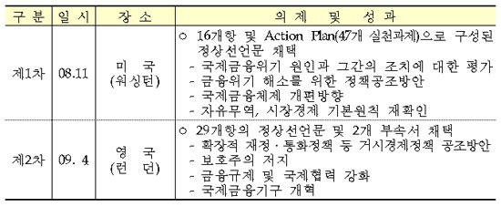 지난해 11월 이후에는 세계 금융위기 극복을 위해 G20 정상회의가 2차례 열렸다.