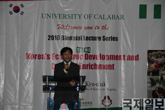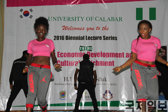 주나이지리아 한국문화원(원장 한성래)에 따르면 지난 5일 남부 해안의 문화도시 칼라바시에 위치한 칼라바(Calabar) 대학교에서 2000여명의 학생과 교수들이 참석한 가운데 한류 문화체험 행사가 포함된 ‘한국의 경제발전과 문화융성’이라는 주제로 대사 특강이 이뤄졌다.