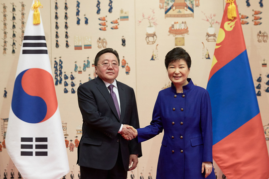박근혜 대통령은 19일 청와대에서 차히야 엘벡도르지 몽골 대통령과 정상회담을 하고 이러한 내용이 담긴 3건의 경제 분야 양해각서(MOU)를 체결했다.