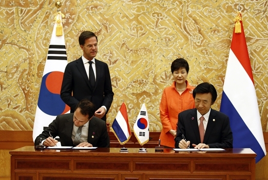윤병세 외교부장관과 마르테인 반 담(Martijn van Dam) 네덜란드 농업장관은 27일 한-네덜란드 정상회담 직후 청와대에서 ‘대한민국 정부와 네덜란드 정부 간의 취업관광 프로그램에 관한 양해각서’(이하 워킹홀리데이 MOU)에 서명했다고 외교부는 28일 밝혔다.
