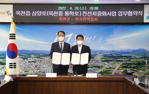 옥천군과 한국전력공사 옥천지사는 20일 군청 상황실에서 3단계 지중화 사업 업무협약을 체결했다.