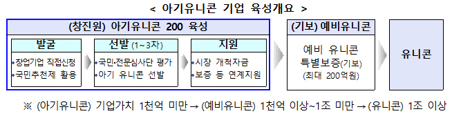 중기부는 ‘아기유니콘200 육성사업’을 통해 혁신적 사업모델과 성장성을 검증받은 유망 창업기업을 발굴해 예비 유니콘기업(기업가치 1000억 이상)으로 육성하고 있다.