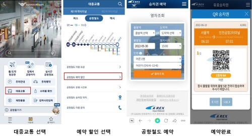 인천공항 모바일앱에 접속해 '대중교통 → 공항철도 → 공항철도 예약할인' 메뉴를 통해 예약한 후 발권된 QR코드를 게이트에 인식하면 바로 직통열차 이용이 가능하다.