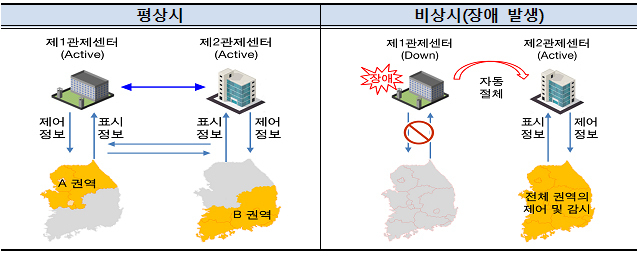 2개의 센터는 평상시에는 관제영역에 따라 각각 관제 업무를 수행하고 한 곳의 관제센터에 장애가 발생하는 경우 정상 운영이 가능한 다른 관제센터에서 즉시 모든 열차의 운행을 제어할 수 있도록 운영할 방침이다.