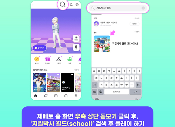 지킬박사 월드에 접속하려면 ‘제페토’ 앱을 다운받고 회원으로 가입한 후 본인의 캐릭터를 만들고 이름을 정한다. 이어 제페토 홈 화면 우측 상단 돋보기 클릭 후 ‘지킬박사 월드’를 검색한 후 입장하면 된다.