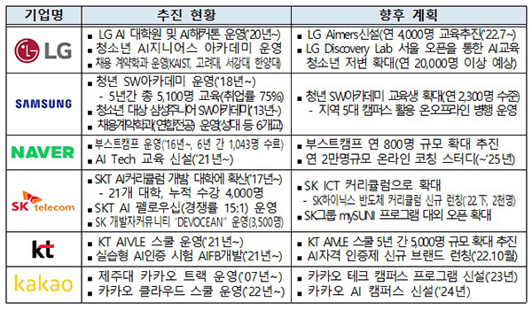 이날 과기정통부는 기업 자체 교육과정 확산을 위한 협력방안 마련과 ‘디지털 인재 얼라이언스’ 발족 등을 준비하고 있다고 밝혔다.
