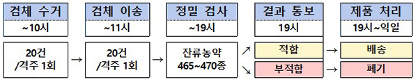 이에 식약처는 민·관 협력으로 신속한 검사체계를 마련했다. 특히 이번에 실시하는 새벽배송 농산물 검사는 수거부터 결과 통보까지 당일에 이뤄지도록 검사체계를 구축했다.