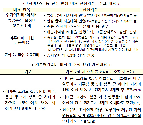 구체적인 비용 산정 기준은 국토부 고시로 정해졌다.