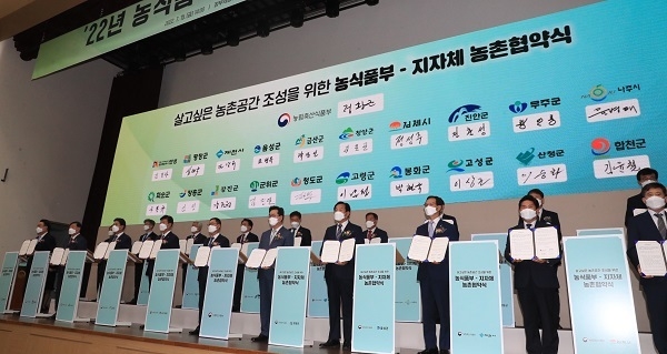 농림축산식품부는 15일 세종컨벤션센터에서 지방자치단체 20곳과 함께 ‘농촌협약식’을 개최한 자리에서 농촌이 ‘모두가 살고 싶은 공간’으로 탈바꿈하도록 지원하겠다고 밝혔다.