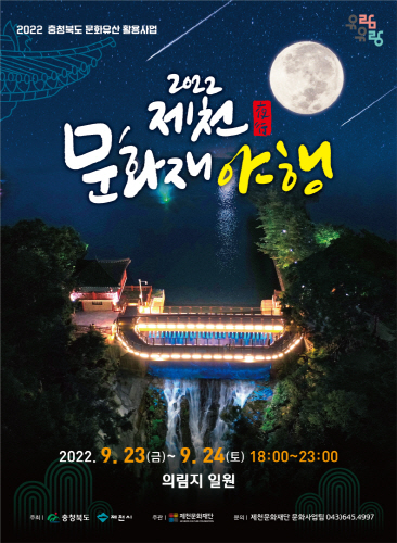 충북 제천문화재단(이사장 김연호)은 오는 9월 23일과 24일 이틀간 의림지 일원 등에서 '제천 문화재 야행(夜行)'을 개최한다고 밝혔다.