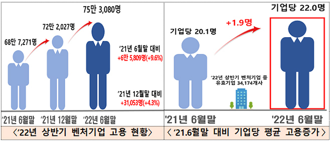 조주현 중기부 차관은 “최근 고물가·고금리·고환율 등 3고 위기로 경제환경이 우려되는 상황 속에서도 우리 벤처·스타트업들은 전체 기업에 비해 월등히 높은 고용 증가율을 보였고 특히 청년 일자리 창출의 절반을 책임지면서 고용 창출의 새로운 주역으로 자리매김했다”고 평가했다.