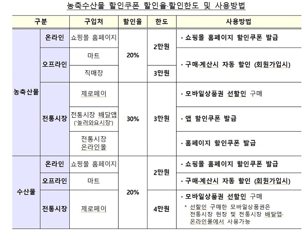 ◆ 농축수산물 할인쿠폰 역대 최대…20∼30% 할인