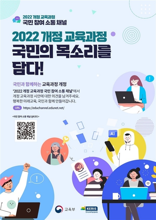 교육부는 2022 개정 교육과정 시안에 대한 국민의 의견을 수렴하기 위해 국민 참여 소통 누리집(educhannel.edunet.net)을 오는 30일 개통하고 다음 달 13일까지 15일간 의견 수렴을 진행한다고 29일 밝혔다.