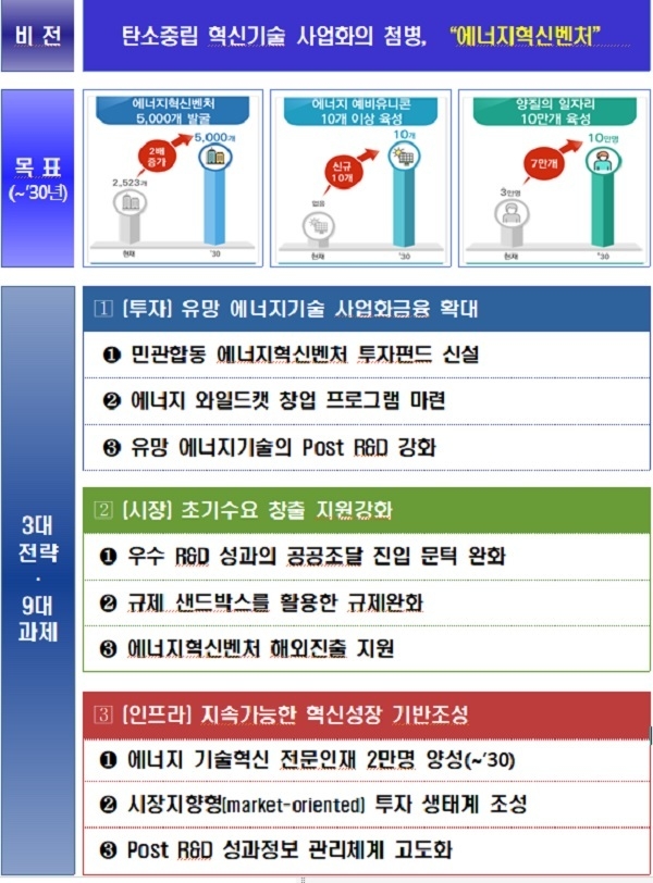 에너지혁신벤처 육성방안은 국정과제인 에너지 신산업·신시장 창출 과제의 일환으로 에너지혁신 기술·서비스를 보유한 중소·벤처·중견기업을 아우르는 정책이다.