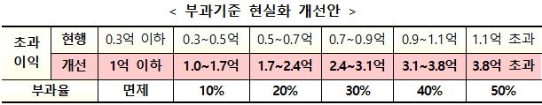 부과율 결정의 기준이 되는 부과구간도 기존 2000만원 단위에서 7000만원 단위로 확대된다.