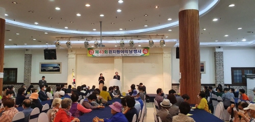 충북시각장애인복지연합회 옥천군지회(회장 도창재)는 옥천읍 소재 명가 웨딩홀에서 지역 내 사회복지시설 종사자와 시각장애인들 150여 명이 참여한 가운데 '제43회 흰지팡이의 날' 기념식을 진행했다고 5일 밝혔다.