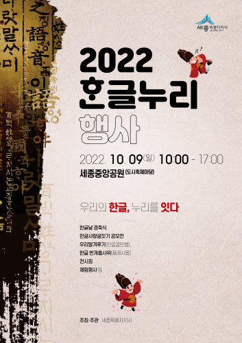 세종특별자치시(시장 최민호)가 훈민정음 반포 576돌을 맞아 오는 9일 세종중앙공원 도시축제마당에서 한글날 경축식과 한글누리행사를 개최한다고 밝혔다.