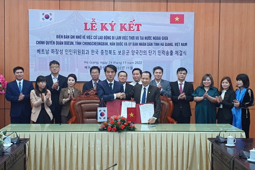 최재형 보은군수는 지난 23일부터 28일까지 4박 6일간의 일정으로 베트남 하장성(성장 응웬 반 선)을 방문해 농촌 인력난 해소를 위한 외국인 계절근로자 도입 업무협약(이하 MOU)을 체결했다고 28일 밝혔다.