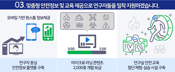 또 내년도부터 연구자 중심 안전정보 플랫폼도 개발해 온라인 교육과 유해인자 정보 등 연구실 단위 필수 안전정보를 모바일로 제공한다.