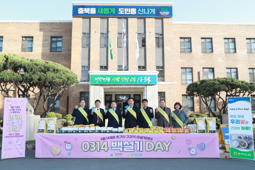 충청북도와 농협 충북지역본부는 14일 백설기데이 행사로 출근길 도청 직원을 대상으로 쌀 소비 촉진 캠페인을 실시했다고 밝혔다.