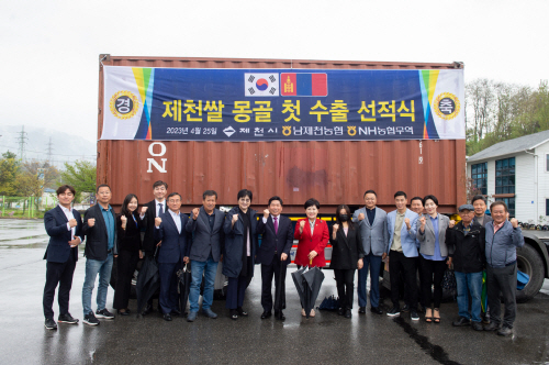 충북 제천시가 '제천쌀'로 몽골 첫 수출길을 열고, 25일 송학주천로 92번지에서 이를 기념하는 선적식을 개최했다고 밝혔다.