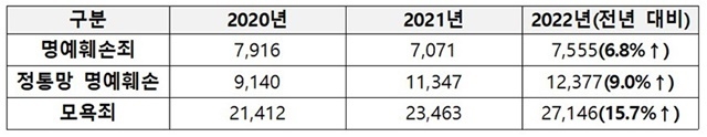 또한 명예훼손·모욕 등 각종 고소·고발이 해마다 증가하는 등 사회적 갈등을 유발하는 상황도 이어지고 있는 상황이다.