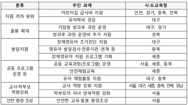 선도교육청은 지역의 자원을 활용해 유치원·어린이집 간 교육·돌봄 격차를 완화하고 교육의 질을 높이기 위한 준비를 선제적으로 시행하게 된다.
