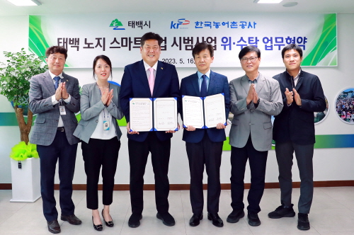 강원 태백시(시장 이상호)는 노지 스마트농업 시범사업을 성공적으로 추진하기 위해 지난 16일 한국농어촌공사 강릉지사(지사장 김교헌)와 위·수탁 업무협약을 체결했다고 밝혔다.