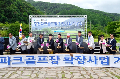충북 제천시가 30일 오전 금성면 중전리 파크골프장 주차장에서 중전 파크골프장 확장을 위한 첫 삽을 떴다.