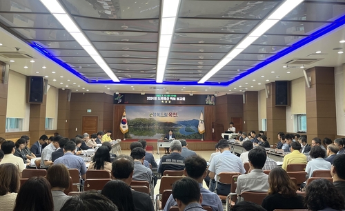 충북 옥천군은 지난 17일 군청 대회의실에서 황규철 군수 주재로 부군수, 국장, 관·과·소장 및 전(全)팀장 등 100여 명이 참석한 가운데 옥천군이 생긴 이래 처음으로 도비예산 확보 보고회를 개최했다고 밝혔다.