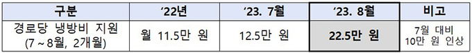 이번 조치는 3일 오전 여당의 요청에 따라 검토한 것으로, 그동안 지원하던 경로당 냉방비에 이례적인 폭염을 고려해 추가로 지원하는 것이다.
