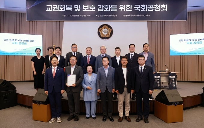 교육부는 14일 국회박물관 대강당에서 이태규 의원과 함께 교권 회복 및 보호 강화를 위한 국회 공청회를 개최했다고 밝혔다.