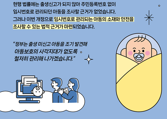 정부가 출생 미신고 아동을 조기에 발견하고 소재·안전을 확인할 수 있는 법적 기반을 마련한다.