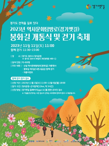 경기도와 경기문화재단 경기옛길센터가 내달 11일 광주시 청석공원에서 하남부터 이천을 잇는 역사문화 탐방로 '경기옛길 봉화길' 개통식을 연다고 밝혔다.