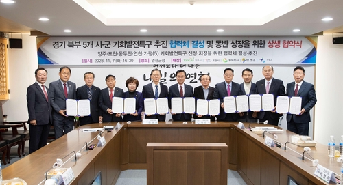 포천시(시장 백영현)는 경기 북부 5개 시군(양주·포천·동두천·연천·가평)이 지난 7일 연천군 상황실에서 '경기 북부 5개 시군 기회발전특구 추진 협력체 결성을 위한 상생 협약'을 체결했다고 밝혔다.