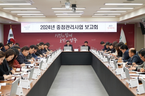 양주시(시장 강수현)는 9일 오전 시정 핵심 현안들을 점검하고 속도감 있는 성과 창출을 위한 '2024년 중점관리 대상사업 보고회'를 개최했다고 밝혔다.