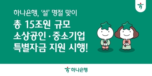 하나은행 관계자는 "설 명절을 맞이해, 자금이 꼭 필요한 소상공인·중소기업들에게 조금이나마 도움이 되길 기대한다"며 "가족과 함께 따뜻하고 풍성한 명절 보내시길 바란다"고 말했다.