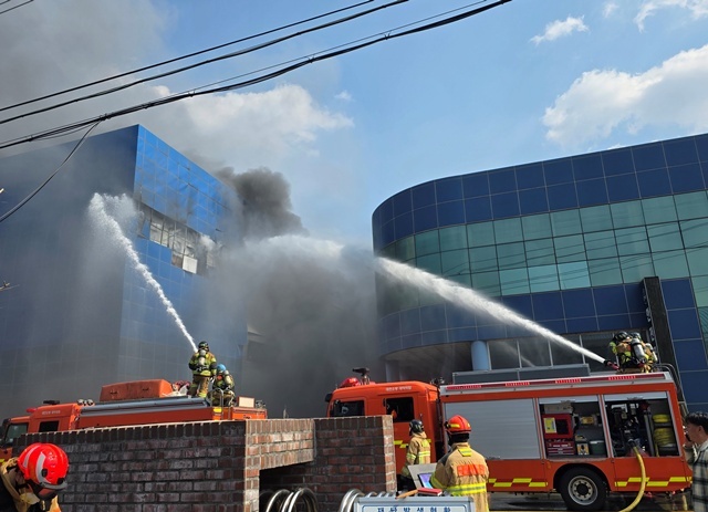 소방 당국에 따르면 3층 규모(연면적 1만318㎡) 철골조로 된 공장 건물은 연결통로로 연결된 2개 동으로, 처음 불이 난 건물은 전소됐고 옆 건물까지 불이 옮겨붙었다.