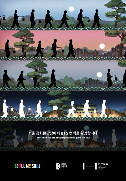 컴백 영상과 함께 한국어와 영어로 된 메시지 '서울 광화문광장에서 BTS 컴백을 환영합니다'(Welcome back BTS at Gwanghwamun Square in Seoul)도 송출한다.